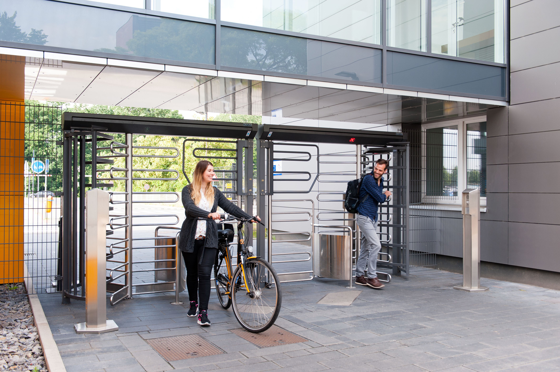 Halbhohe oder hohe Drehkreuze sind robust. Gleichzeitig kommen Sie elegant daher und sorgen für eine einfache, schnelle Zutrittskontrolle im beaufsichtigten Bereich.